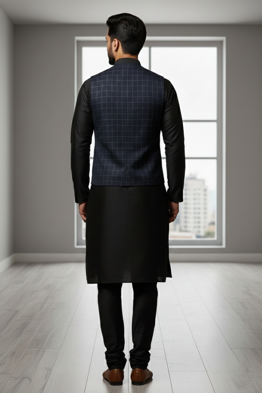 Be the first to review “Men’s Navy Blue Windowpane Double-Breasted Waistcoat”